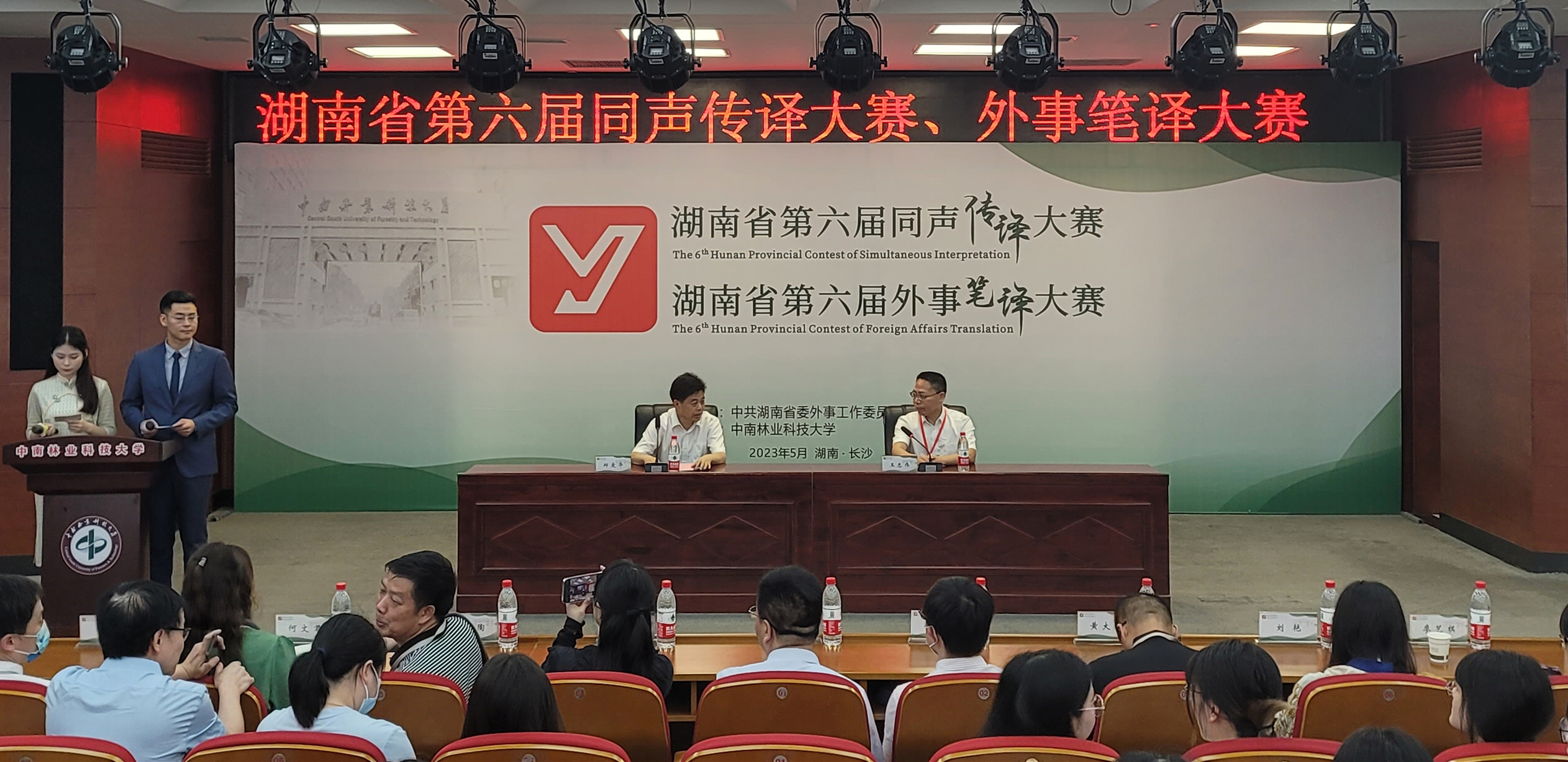 2023年5月28日,由湖南省委外事工作委员会办公室主办,中南林业科技大学承办的“湖南省第六届同声传译大赛”和“湖南省第六届外事笔译大赛”在中南林业科技大学圆满落幕。