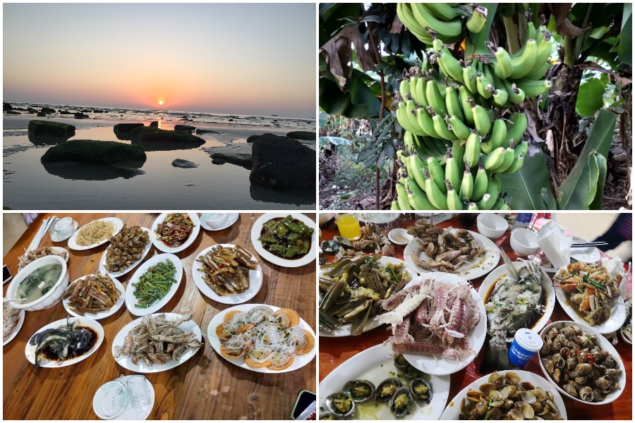 到达涠洲岛后,大家开始自由活动。晚上一起品尝海鲜大餐。从菜市场现买回来加工的海鲜,味道非常鲜美。