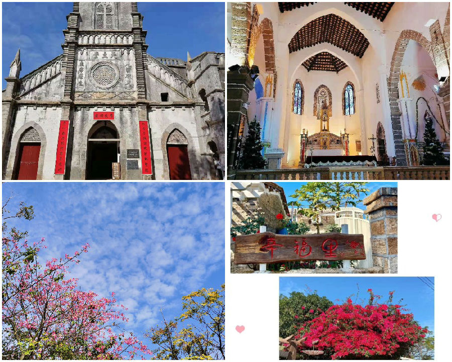 涠洲岛盛塘村的天主教堂,是一座具有欧洲中世纪建筑风格的哥特式教堂,教堂的一大建筑特色是:完全就地取材,利用当地的火山灰块石和珊瑚石砌筑墙体,显得古朴而又粗犷。通往教堂的路上,风景也是相当迷人,让人不由得放慢脚步。